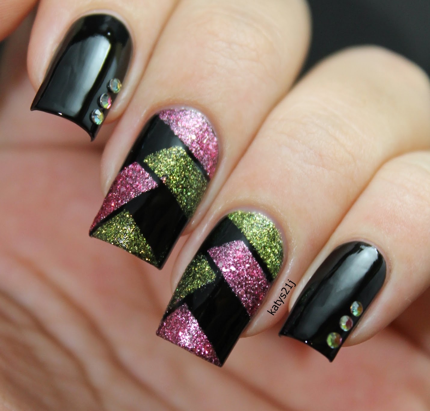 For my accents I used these 2 textured polishes, the color combo was obviously inspired by the rhinestones.